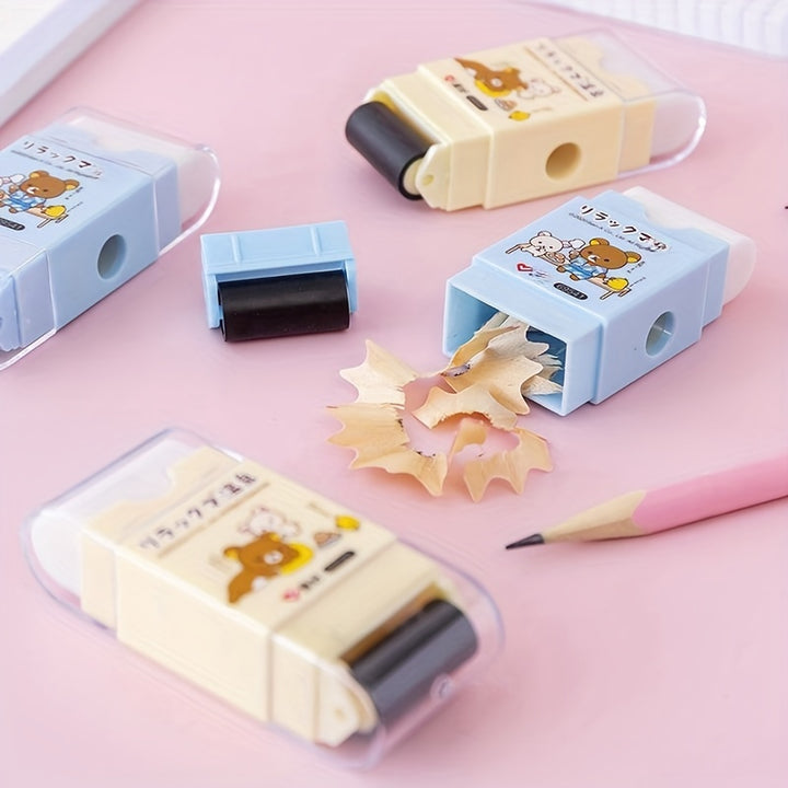 3-in-1 Functionality: This versatile tool combines three essential stationery items into one compact unit - an eraser, a pencil sharpener, and a storage compartment for small items like paperclips or staples.