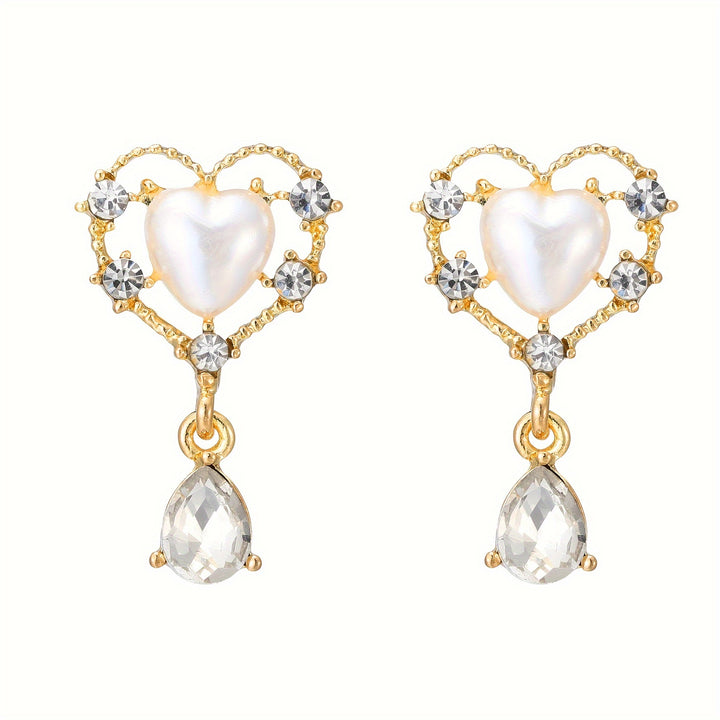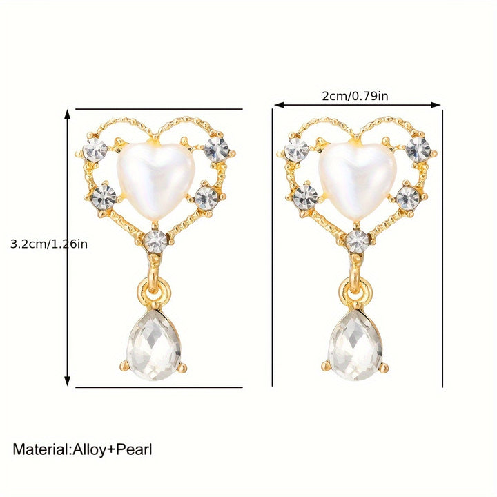 These Delicate Heart With Water Drop Pendant Stud Earrings are a beautiful addition to any jewelry collection. Made of high-quality Alloy material, these earrings are embellished with Synthetic Gems, giving them an elegant and vintage style. Perfect for daily wear or special occasions, these earrings are a great gift option for Valentine's Day. Add a touch of sophistication to your outfit with these stunning earrings.