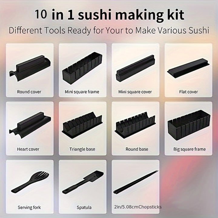 - 10-Piece Sushi Making Kit: This comprehensive set provides all the necessary tools for creating homemade sushi.