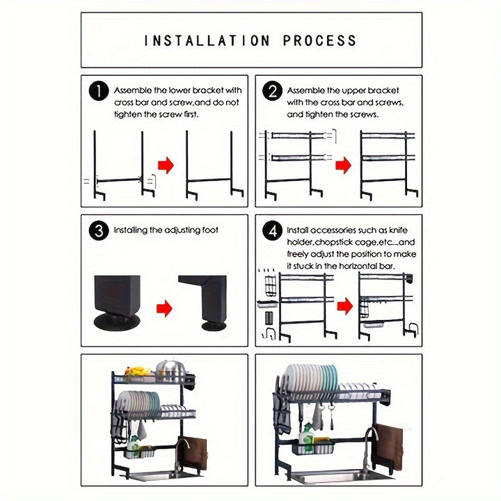 Double Layer Kitchen Sink Storage Rack: This storage rack is designed specifically for the kitchen sink area, providing extra storage space for dishwashing supplies, utensils, sponges, and more. It helps to keep the sink area organized and clutter-free.