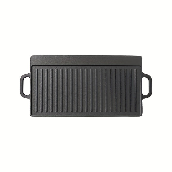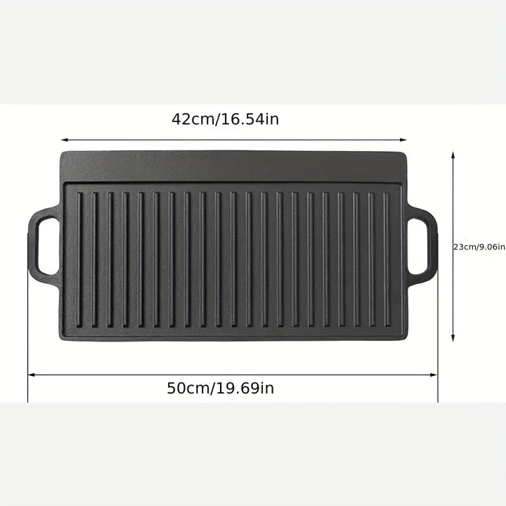 The 1pc Non-Stick Double Sided Grill is a versatile cooking tool designed to enhance your culinary experience. Made from durable cast iron, this reversible griddle offers two different cooking surfaces. On one side, you have a smooth, non-stick grill that allows you to cook meats, vegetables, and other delicate foods without worrying about sticking or burning. Flip it over, and you have a ribbed surface that creates those characteristic grill marks, perfect for searing steaks or achieving that smoky flavor.