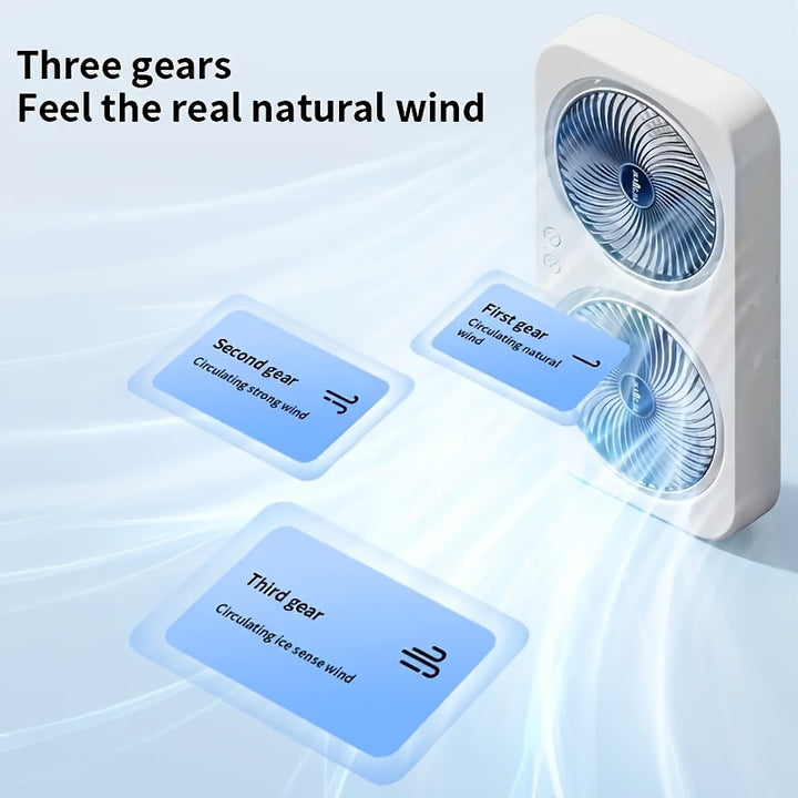 - Dual Head Design: Features two independently adjustable fan heads to provide wider and more focused airflow.