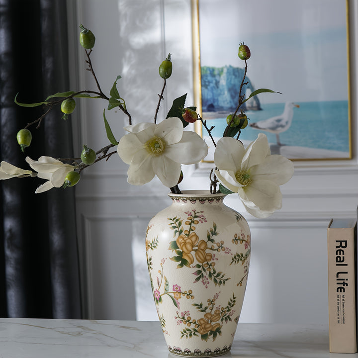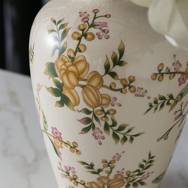 - The vase features a stunning ice-cracked glaze finish, adding texture and depth to its appearance. This finish not only enhances its vintage charm but also provides a sophisticated contrast to its smooth ceramic surface.