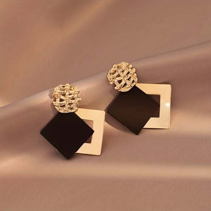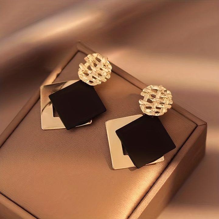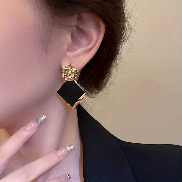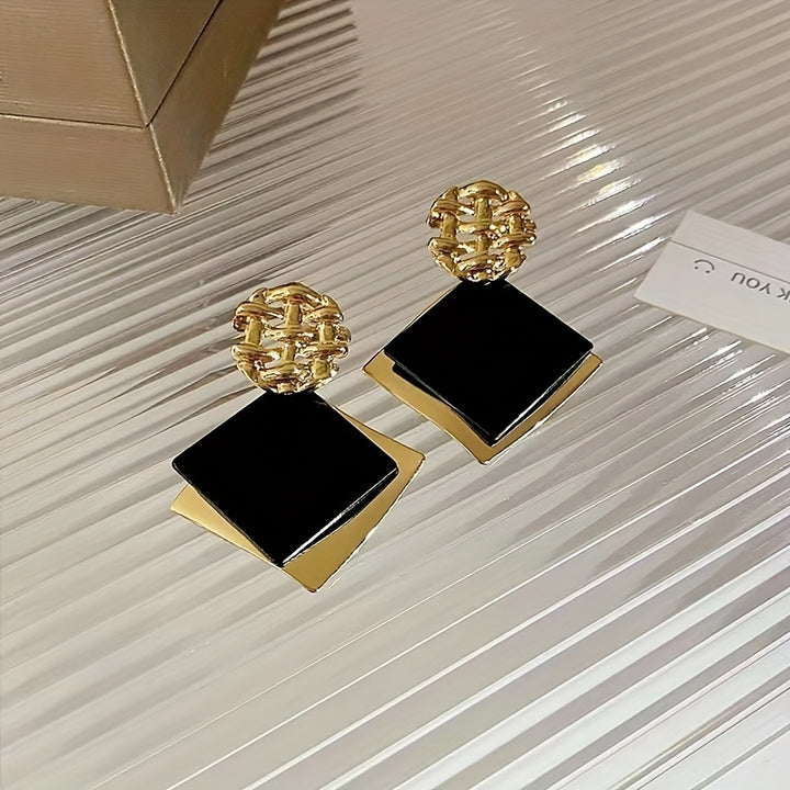 These European And American Black Large Rhombus Earrings are the perfect statement piece to elevate your look. With their glossy design, exaggerated fashion square shape, and exquisite detailing, these earrings are sure to add a touch of sophistication and style to any outfit. Perfect for fashion-forward individuals who want to make a bold statement with their jewelry.