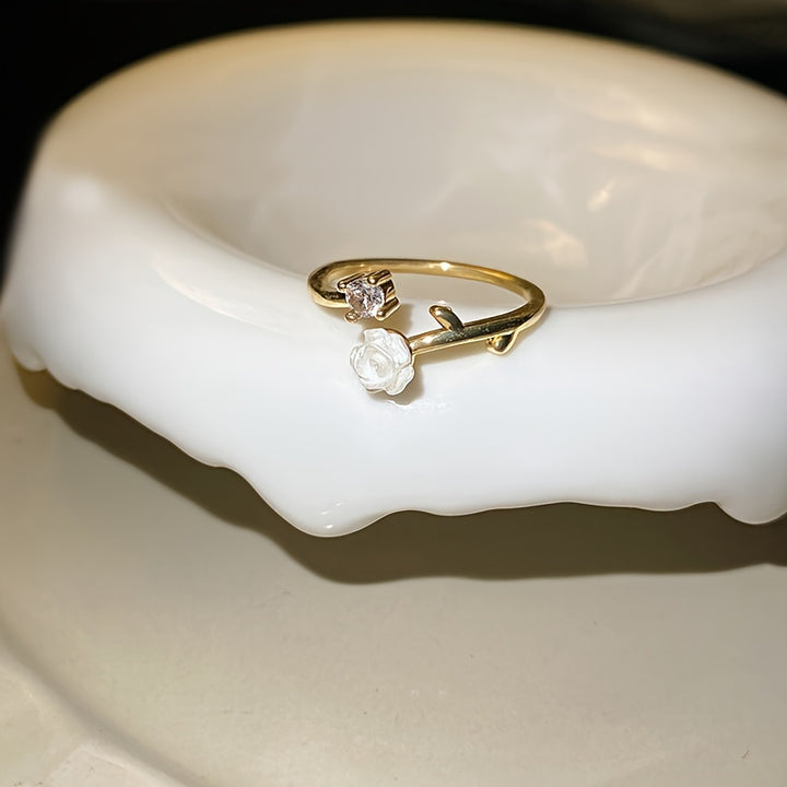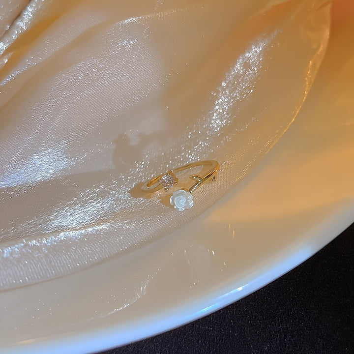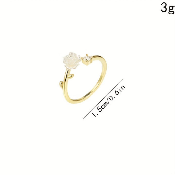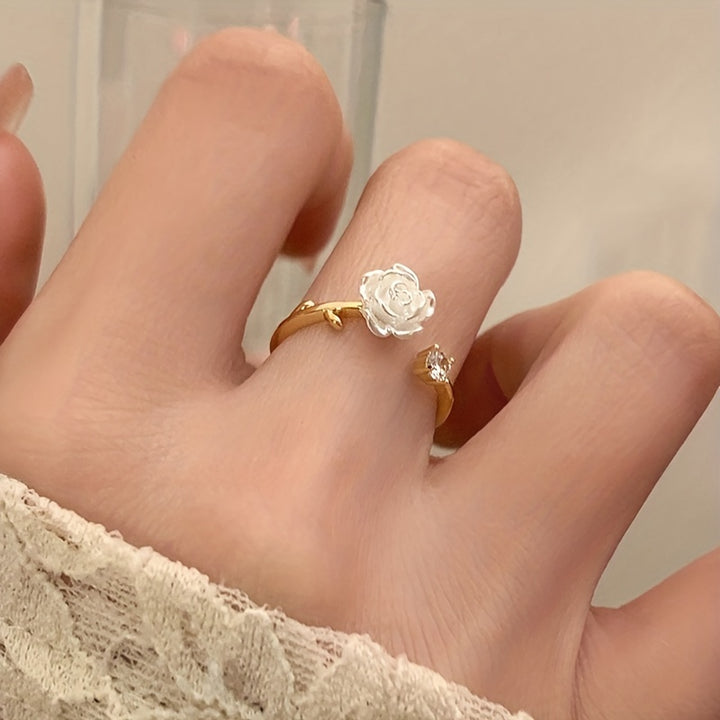 Dainty Camellia Design: This cuff ring features a delicate camellia design, adding a feminine touch to your outfit.