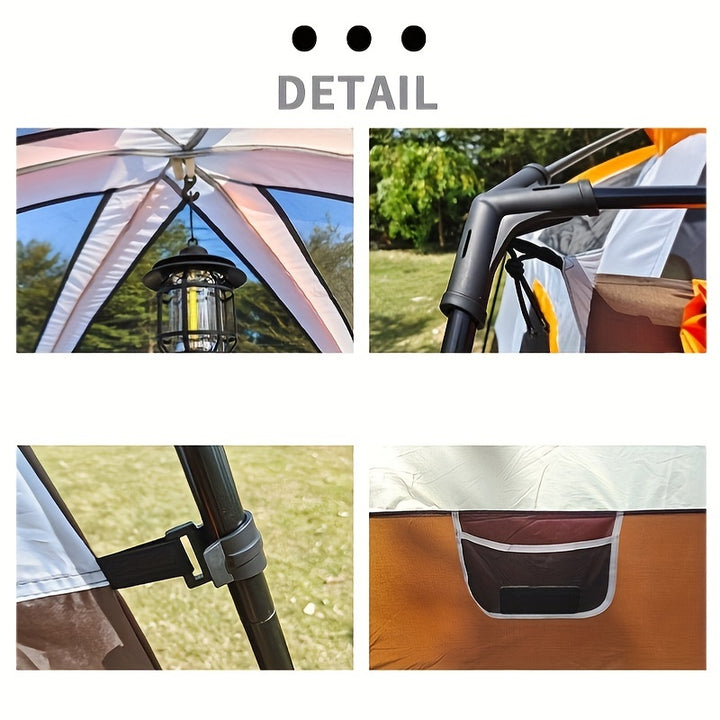 πͺ [Why Buy This?] Need a reliable and spacious tent for your next camping adventure? This 1pc Thickened Rainproof Tent has got you covered. Literally! π With its built-in vestibule, you can bid farewell to messy sleeping areas and keep your gear neatly organized. The spacious square shape allows room for up to 10 people, so you can bring your entire crew along. No complicated setups here β the convenient zipper closure ensures a hassle-free camping experience. Whether it's rain or shine, this water-resistant tent will keep you dry and cozy. Don't let the changing seasons hold you back β this all-season tent is ready for any adventure you throw its way. Elevate your camping game and make memories that will last a lifetime with this 1pc Thickened Rainproof Tent. So what are you waiting for? Time to pack your bags and embark on the ultimate outdoor adventure! π²ποΈ