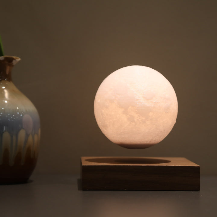 Floating Moon Lamp: This unique moon lamp uses magnetic levitation technology to create a mesmerizing floating effect. The moon lamp levitates above its magnetic base, adding a touch of magic to any space.
