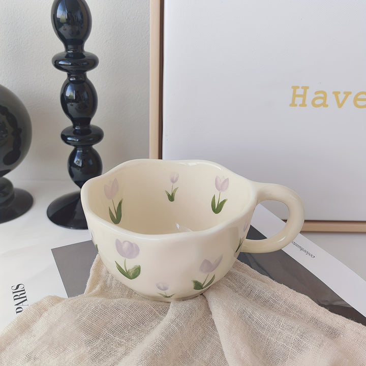 - Flowers Print Ceramic Coffee Mug