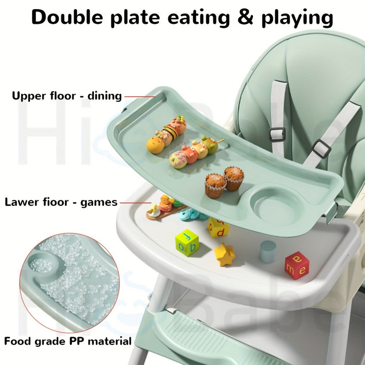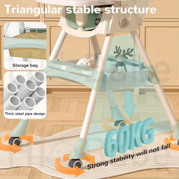 This foldable reclining meal feeding high chair is designed to provide comfort and convenience for both parent and child. The adjustable height and movable legs/table make it versatile for use in various settings, while the durable PP material ensures easy cleaning and maintenance. Ideal for infants aged 0-3 years old, this high chair is a practical addition to any household.