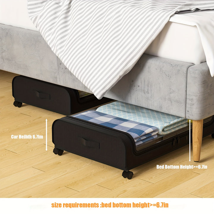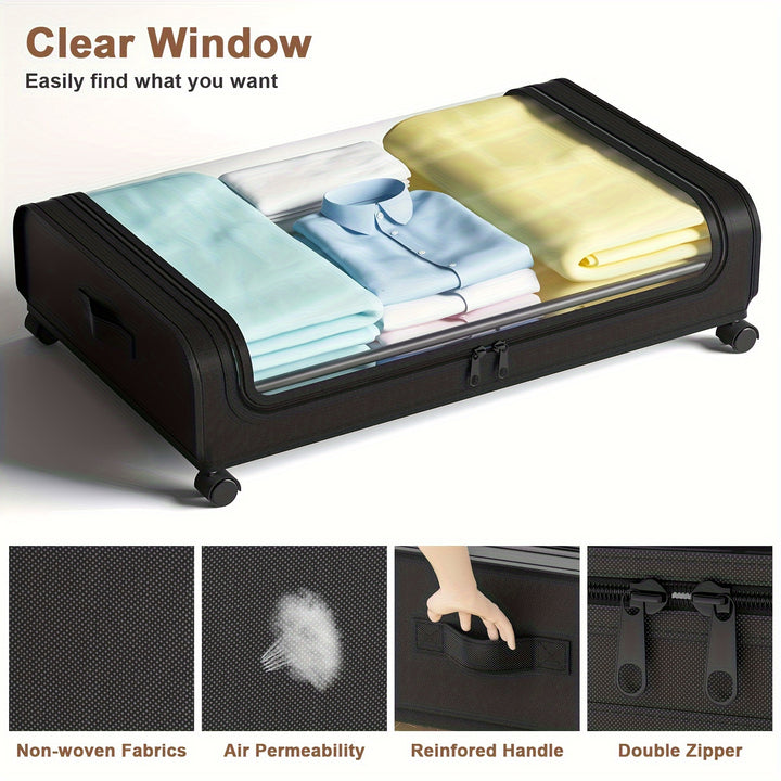 Add these 2pcs Underbed Storage Bags to your home organization arsenal. With their large capacity and convenient features such as clear windows and reinforced handles, these storage containers are perfect for keeping your belongings tidy and easily accessible.