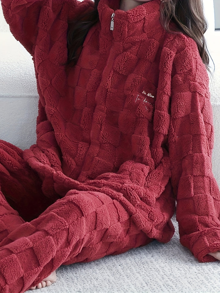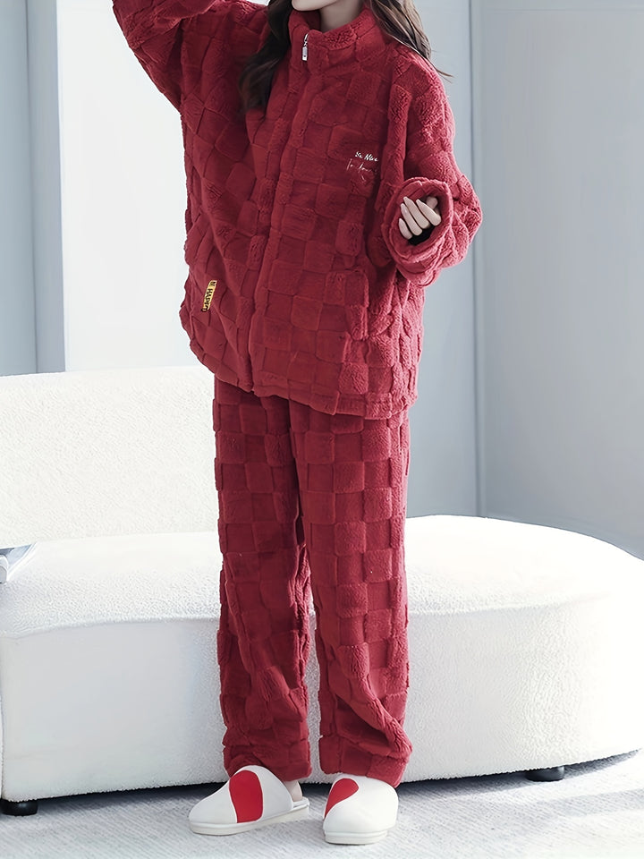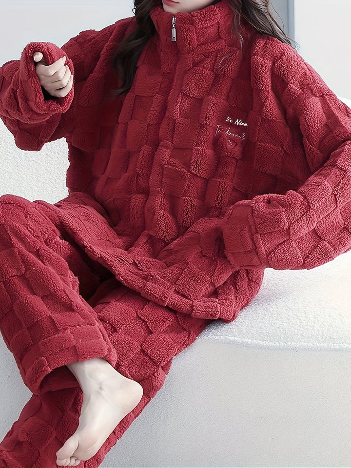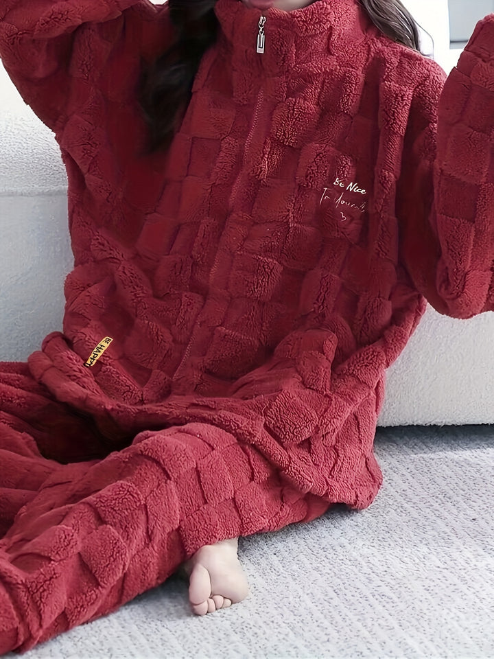 - Long sleeve zipper top: The pajama set includes a long-sleeve top with a zipper closure, allowing for easy wear and adjustment.