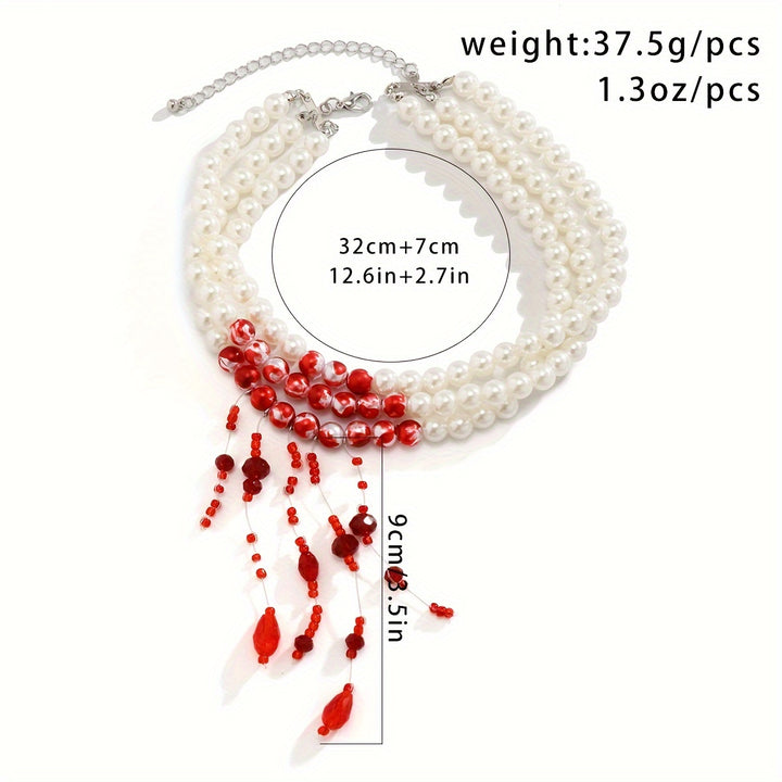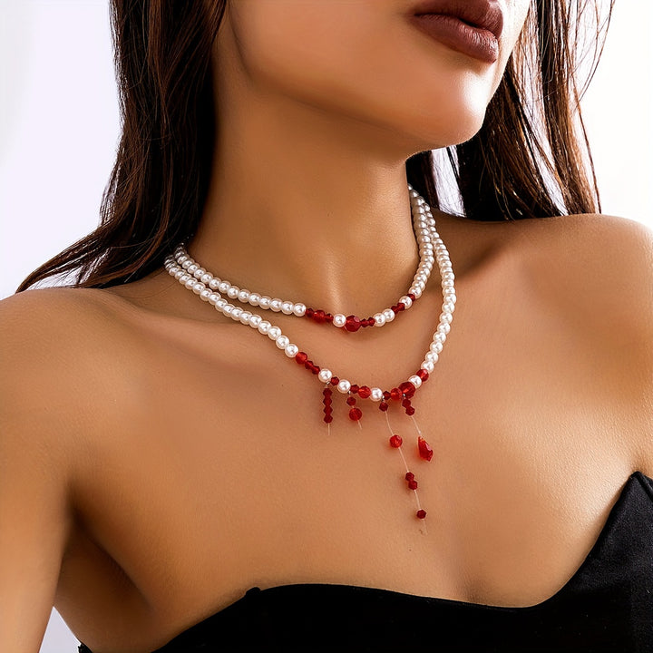 Gothic Pearl Necklace - Blood Drop Pendant, Adjustable Halloween Jewelry - TJR7Y2P