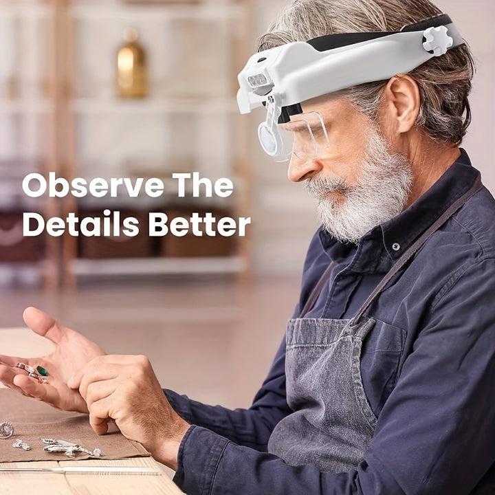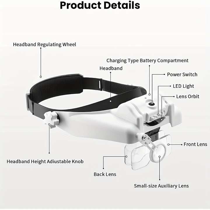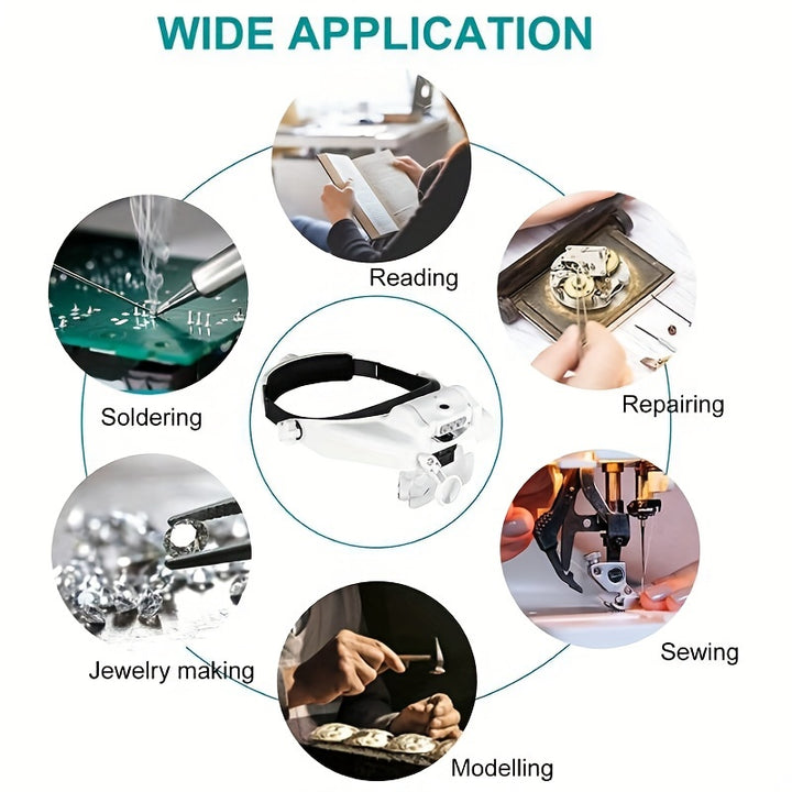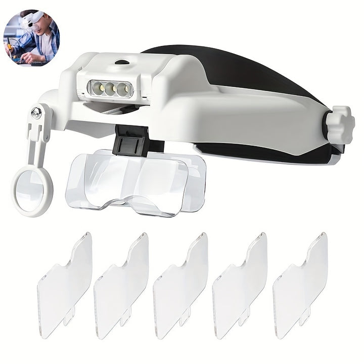 GOXAWEE Head Mounted Magnifying Glass With LED Light, High Definition Magnifying Glass, 6 Sets Of Different Magnification Lenses -FA5S