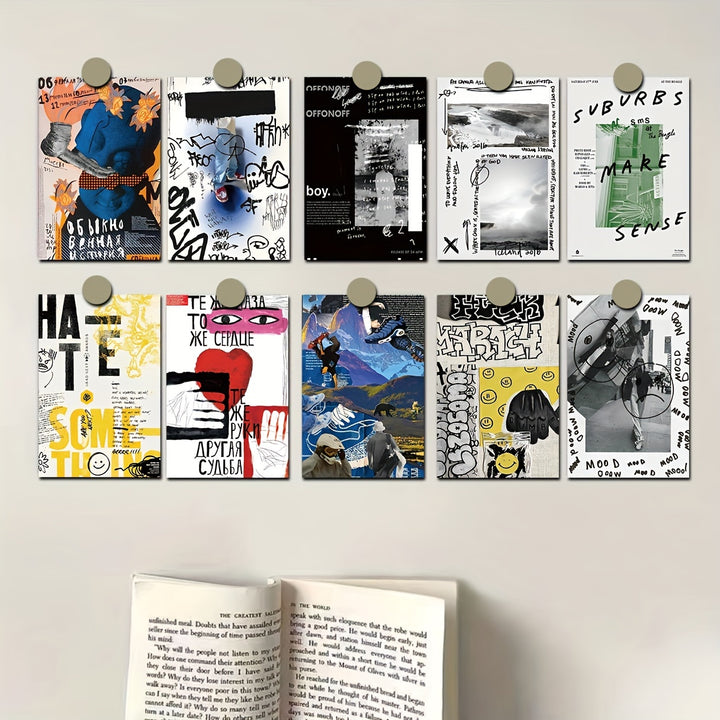 Set of 10 Graffiti Posters: This set includes 10 unique and vibrant graffiti posters, perfect for adding a pop of color to any space.