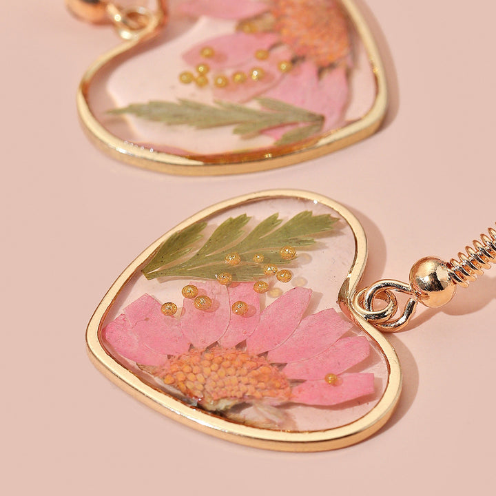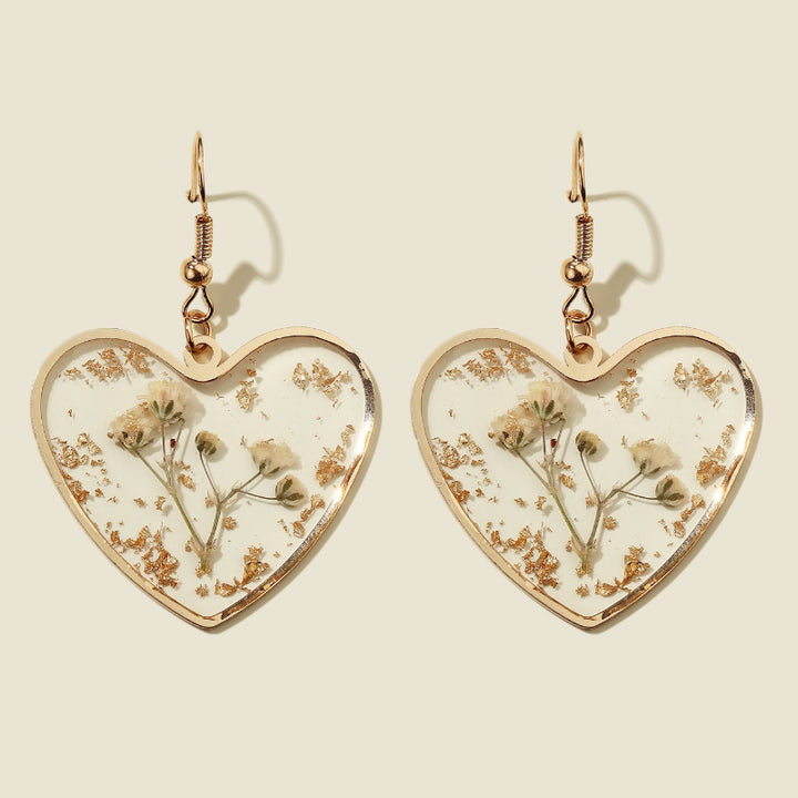 Heart Design Dried Flower Decor Earrings - F3KZ