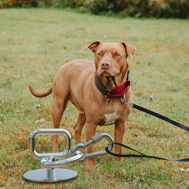 Versatile Use: The stake can be used with any dog leash or yard chain, offering flexibility in how you choose to secure your pet. Its universal design makes it a convenient choice for any dog owner.