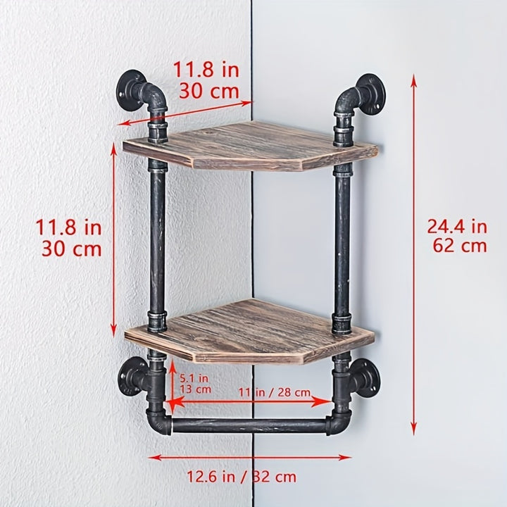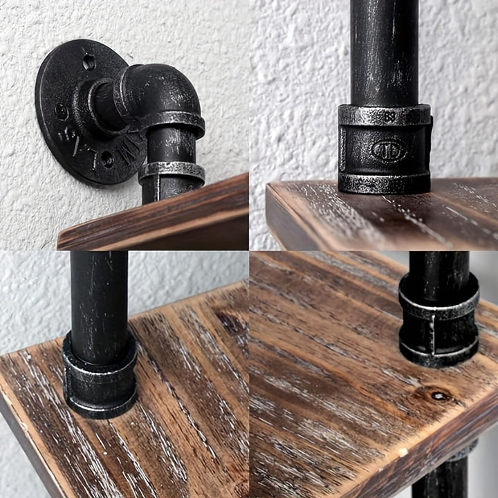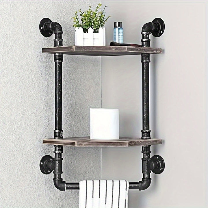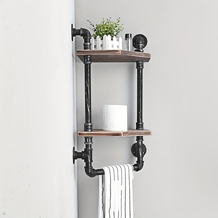 Industrial Rustic Wooden Towel Rack with Metal Pipe Design - PJIC