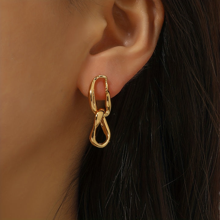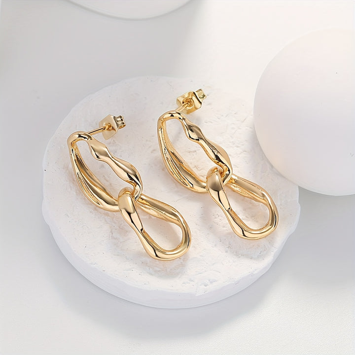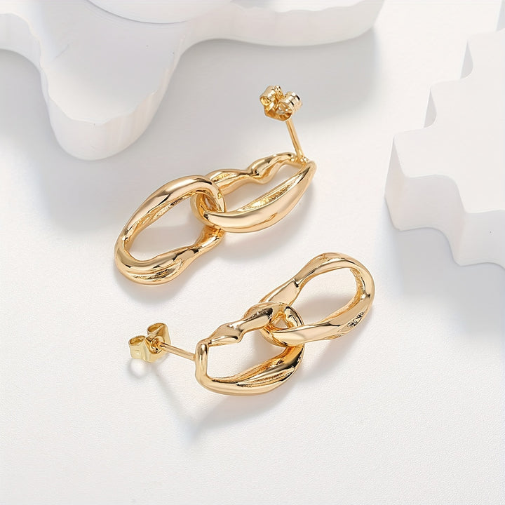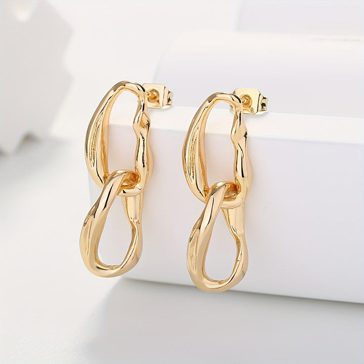 Irregular Double Circle Chain Drop Earrings Geometric Decor Drop Earrings Fashion Party Or Everyday Wear
