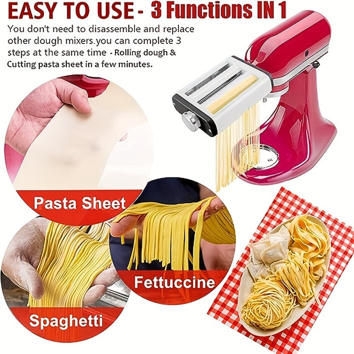 3-in-1 Functionality: This attachment includes a dough roller, spaghetti cutter, and fettuccine cutter. With these three components, you can effortlessly make different types of pasta, such as spaghetti, fettuccine, and even ravioli.