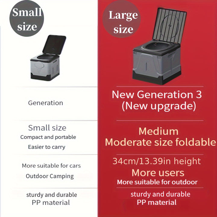 Large Size and Portability: This portable toilet offers ample space and a comfortable sitting height. Despite its spacious design, it's highly portable and easy to carry, making it suitable for all your outdoor adventures.