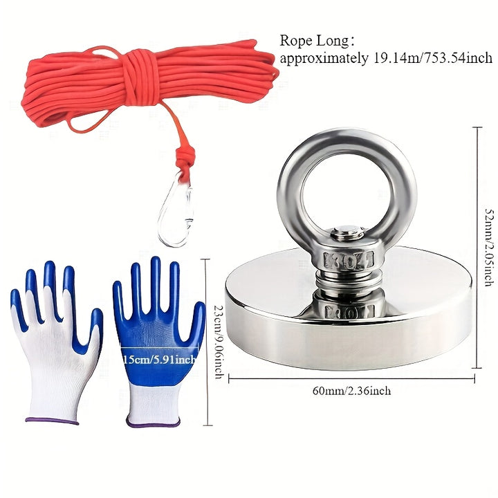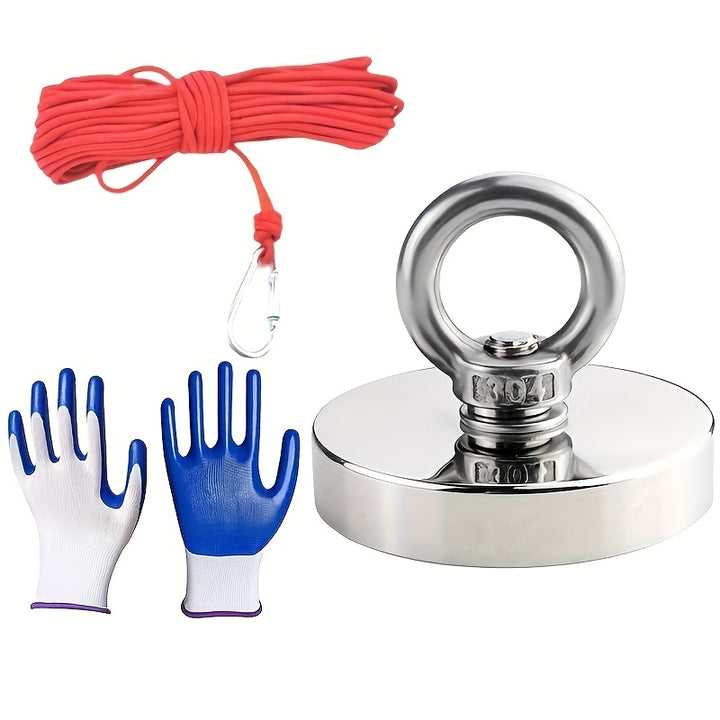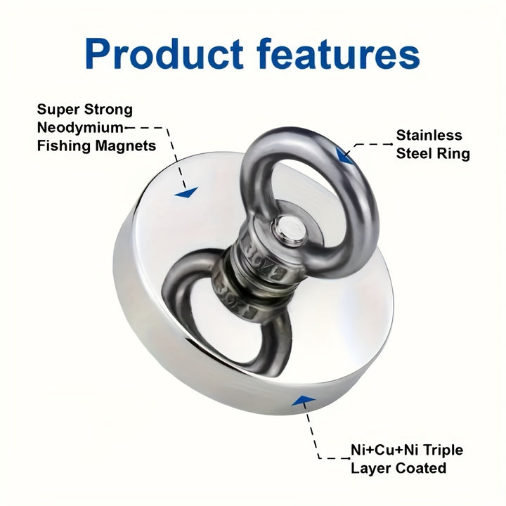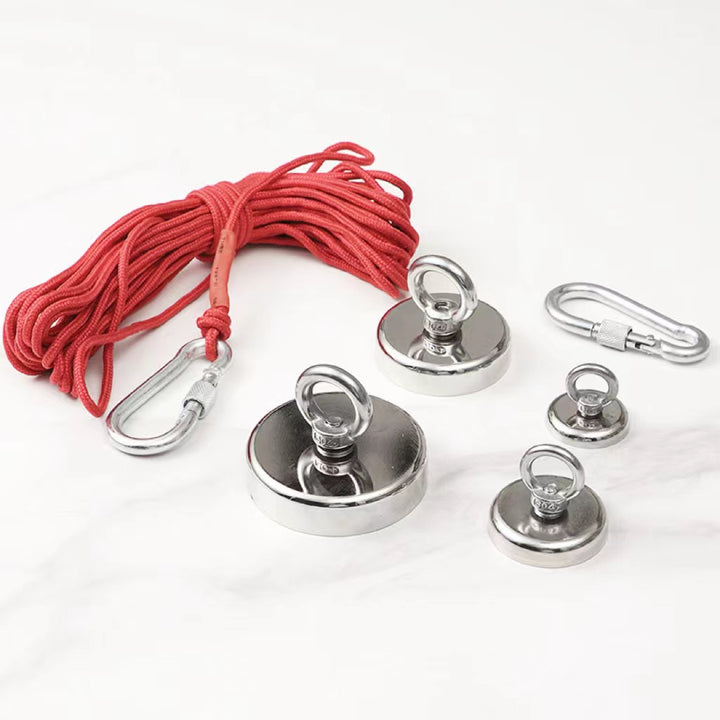 The set includes three magnetic hooks designed for superior hold and durability. These hooks boast a super strong magnet that ensures they securely attach to metallic objects, making them ideal for fishing, river rescue, and treasure hunting. -