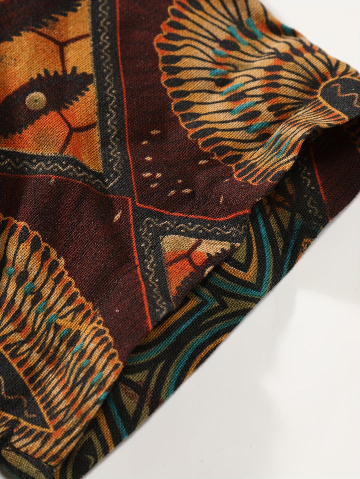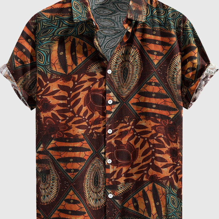 Elevate your summer wardrobe with the Men's Geometric Print Cotton Blend Shirt. Combining style, comfort, and breathability, this shirt is a great choice for enjoying warm weather in both casual and fashionable settings.