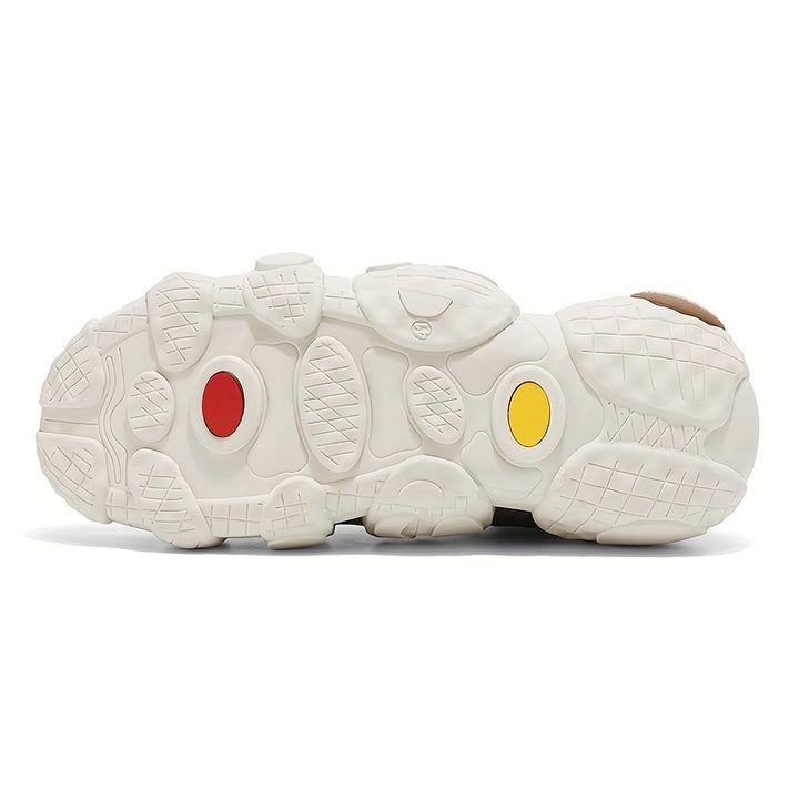 Equipped with a robust rubber sole that offers excellent traction and durability, ensuring stability on various surfaces and longevity in use.