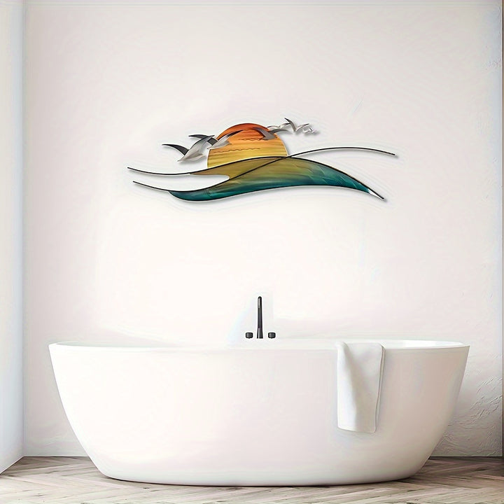 Metal Seagull Wall Art with Waves and Sun - MBLY