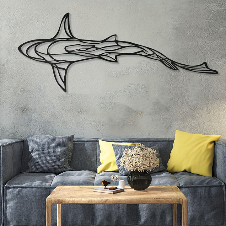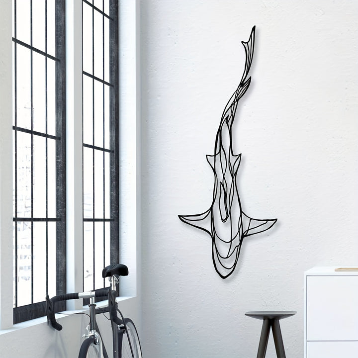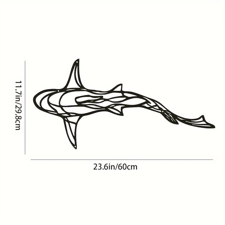 Add a touch of whimsy to your space with this Metal Wall Decor Shark Pendant. Made of high-quality metal, this wall art features a minimalist and creative shark design that is sure to be a conversation starter. Whether you hang it in your living room for a bold statement piece or in your garden for a touch of whimsy, this wall decor is a versatile addition to any space. Easy to mount and requiring no electricity, this shark pendant is a stylish and unique decor piece that will brighten up any room.
