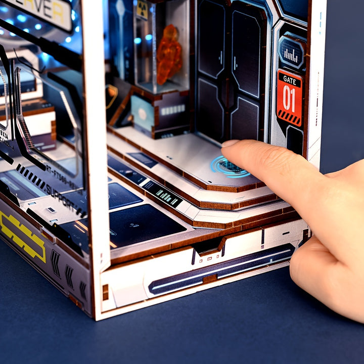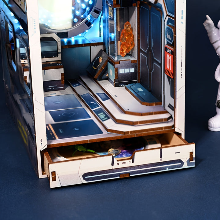 Science Fiction Style Book Stand Set Ornament: This product features a miniature science fiction style book stand set ornament, perfect for adding a unique touch to your decor or as a collectible item.