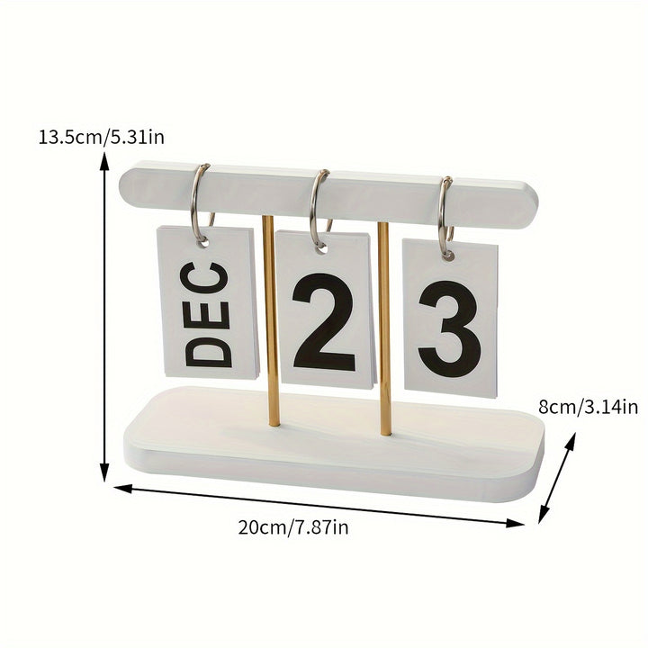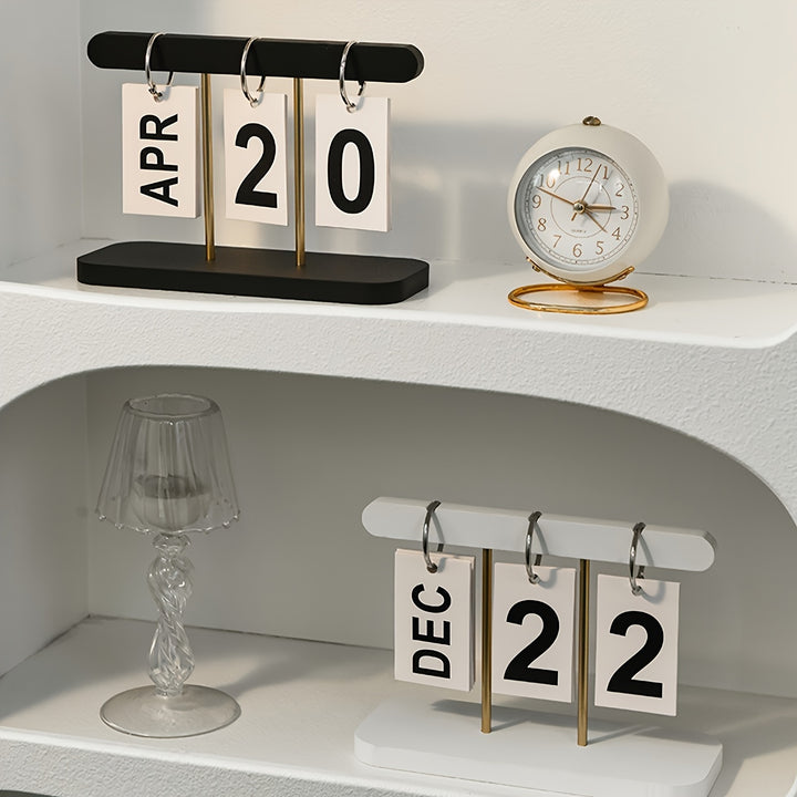 This flip calendar desk organizer boasts a sleek, contemporary aesthetic perfect for any home or office setting. Its minimalist style effortlessly complements a variety of décor themes while providing functionality and style. -