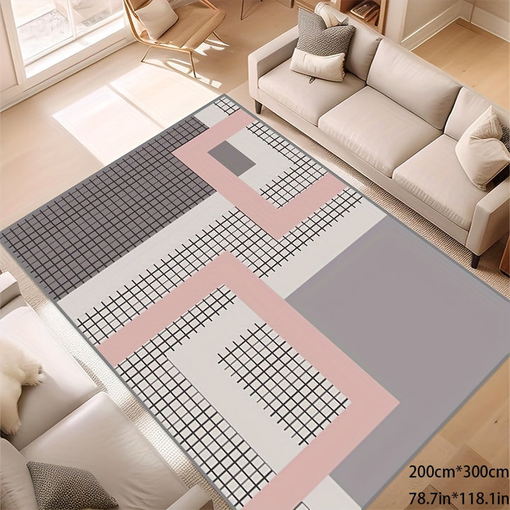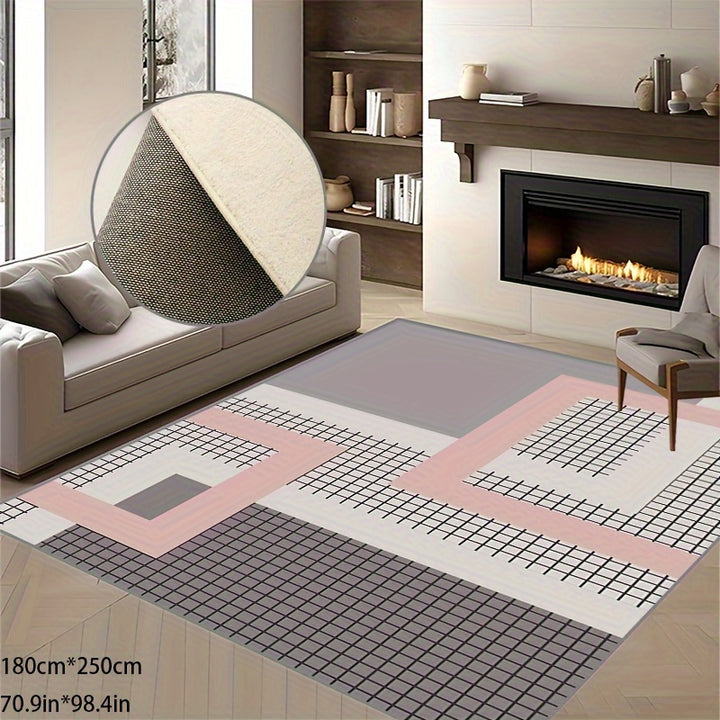 This rug is the perfect addition to any space, adding a touch of modern style with its minimalist geometric pattern. The multi-color faux cashmere material is not only soft to the touch but also highly absorbent and easy to clean, making it a practical choice for high-traffic areas. The non-slip backing ensures that the rug stays in place, providing added safety. Suitable for both indoor and outdoor use, this rug is versatile and can be used in a variety of settings.