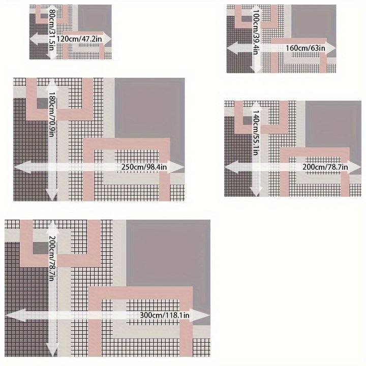 31.5in*47.2in/80cm*120cm, 39.4in*63in/100cm*160cm, 55.1in*78.7in/140cm*200cm, 70.9in*98.4in/180cm*250cm, 78.7in*118.1in/200cm*300cm |