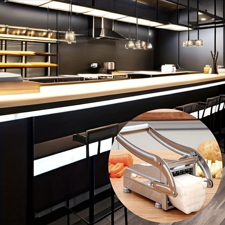- Easy to use: Simply place the vegetable onto the cutter, press the handle down, and the sharp blades will swiftly cut through the vegetable, giving you perfectly-shaped fries or slices.
