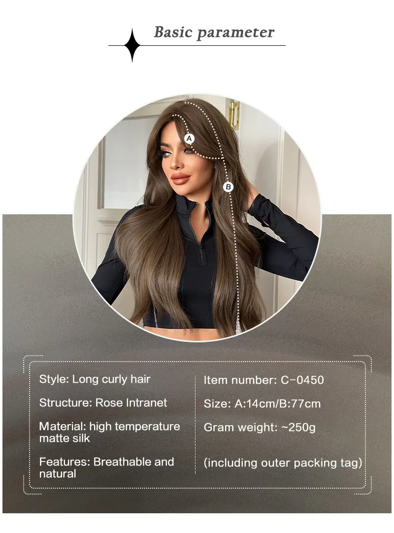 【Name】NAMM Long Wavy Light Brown Wigs For Women 30 Inch Curly Wave Wig With Natural Looking Synthetic Fiber Fashion Wig For Party Use