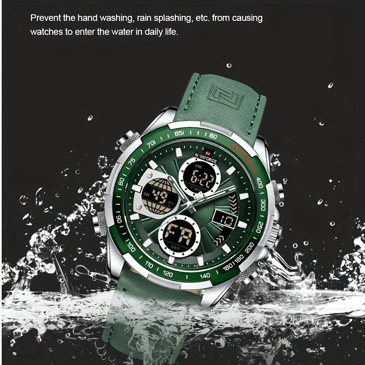 NAVIFORCE Multifunctional Electronic Men's Watch Genuine Leather Strap Waterproof Sports Digital Wrist Watch-3S0Q
