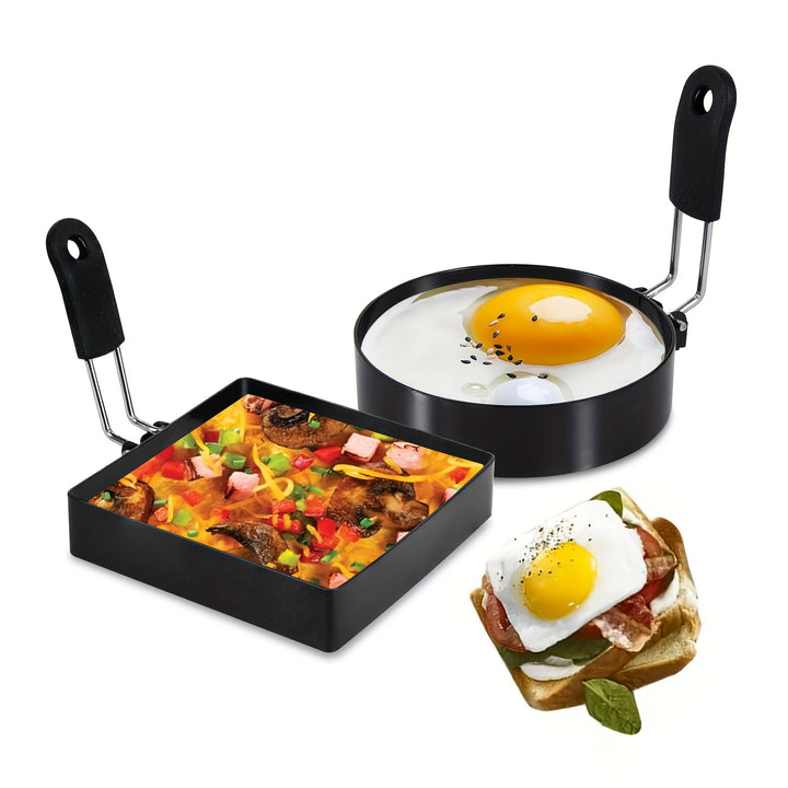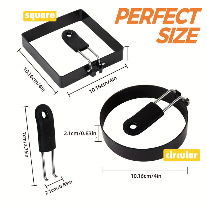 Round and Square Shapes: Includes one round (10.16cm) and one square (10.16cm) ring, offering versatility for different breakfast preparations.