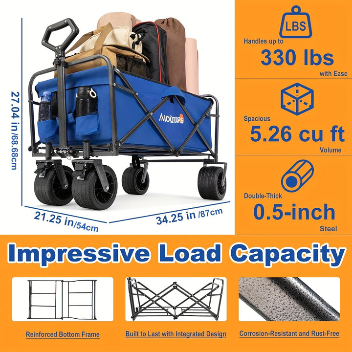🌟 [Easy-Peasy Wheelin']: The large wheels on this trolley are a true game-changer. Say goodbye to struggling with clunky wheels and hello to smooth gliding. Whether you're navigating sand, gravel, or uneven paths, these wheels will have your back every step of the way.