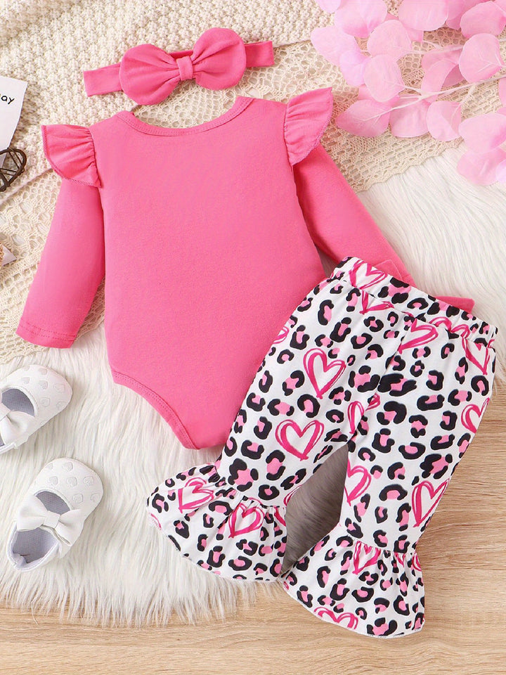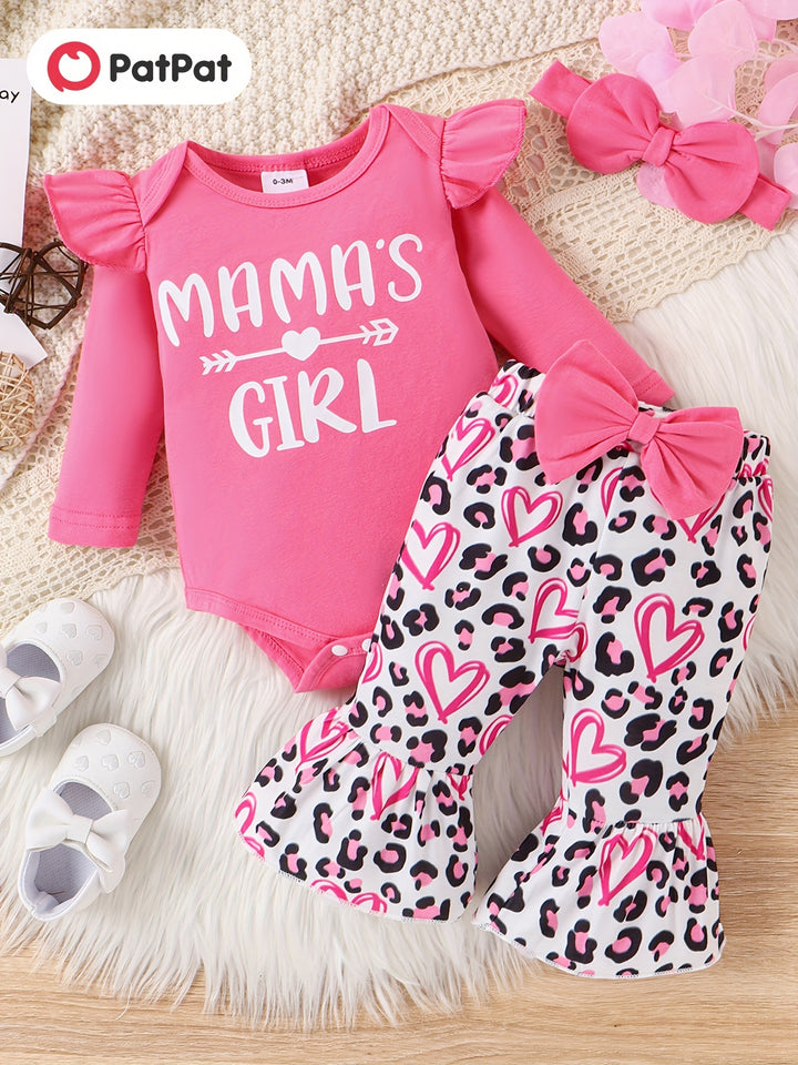 PatPat 3PCS Baby Girl Sweet Ruffle Edge Top/Leopard Pants/Headband Set-G4EV