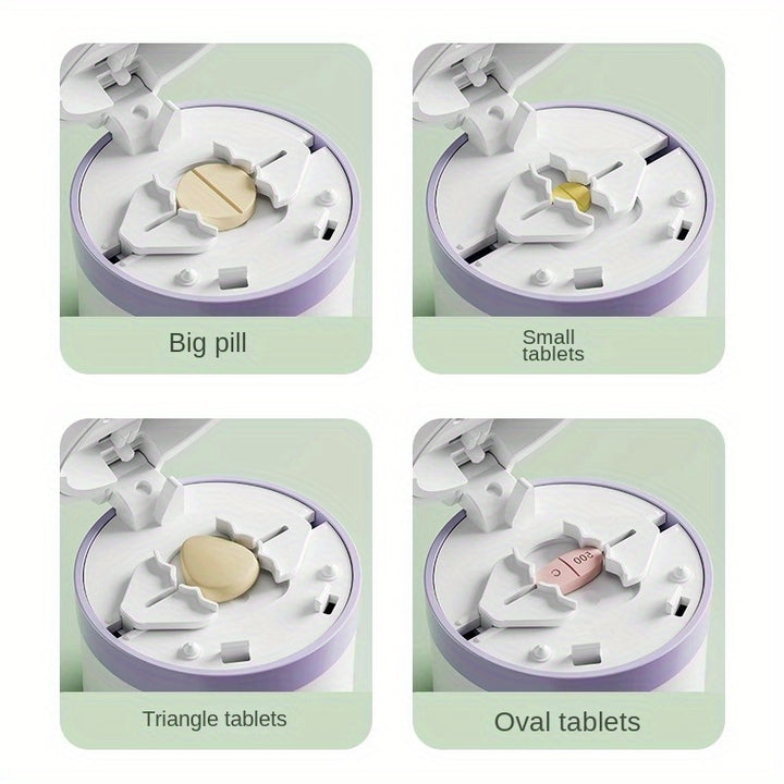 Pill Cutter, Cuts 4 Pills at Once, Portable with Pill Box - TJR8F1L