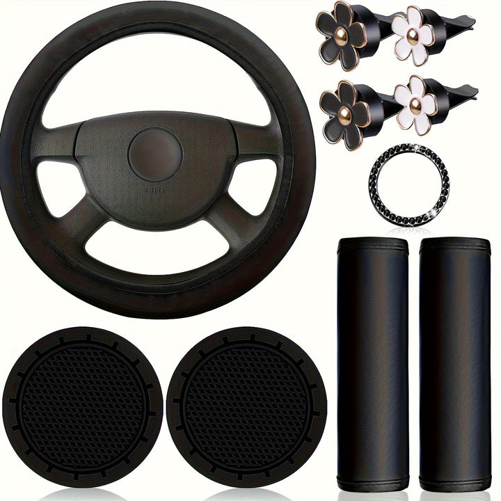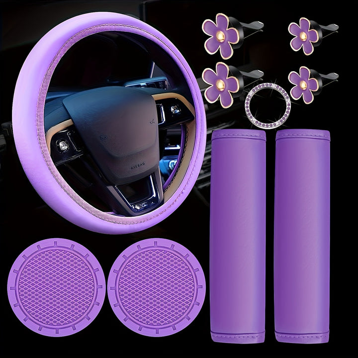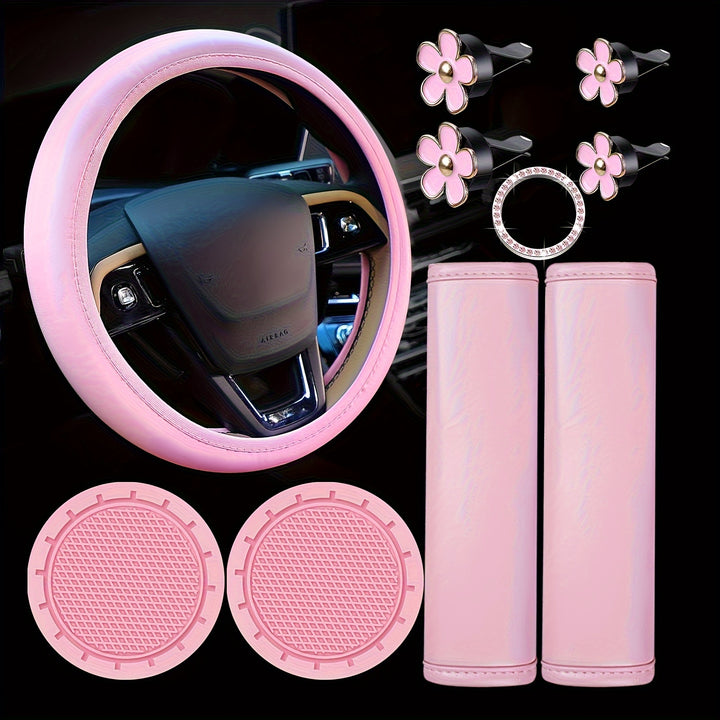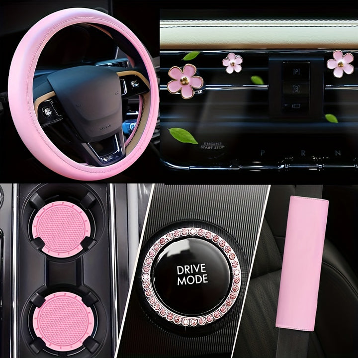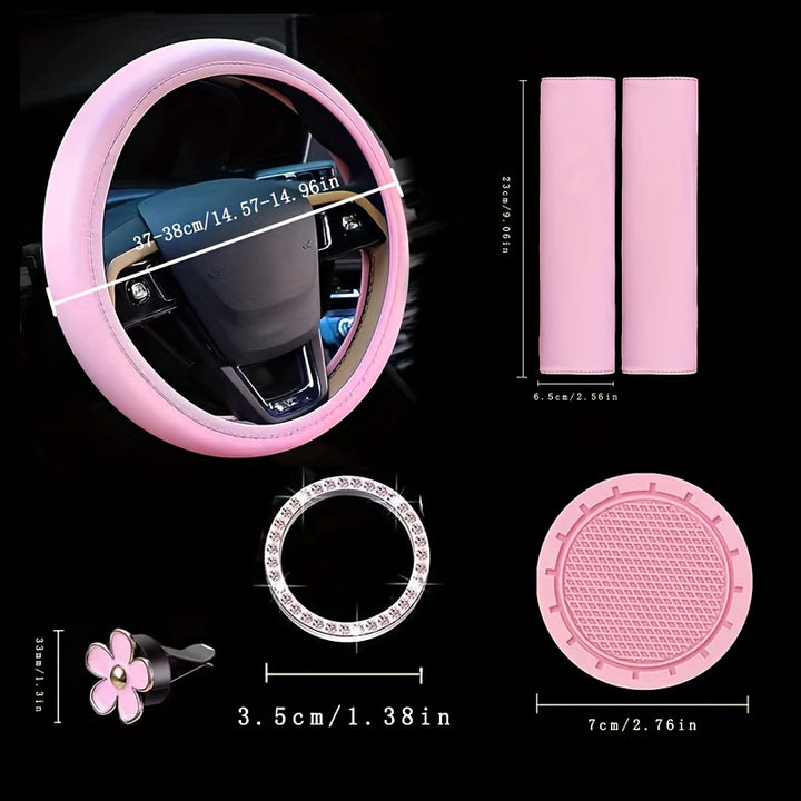 Pink Car Accessories Set: Luxury PU Leather - B3FR