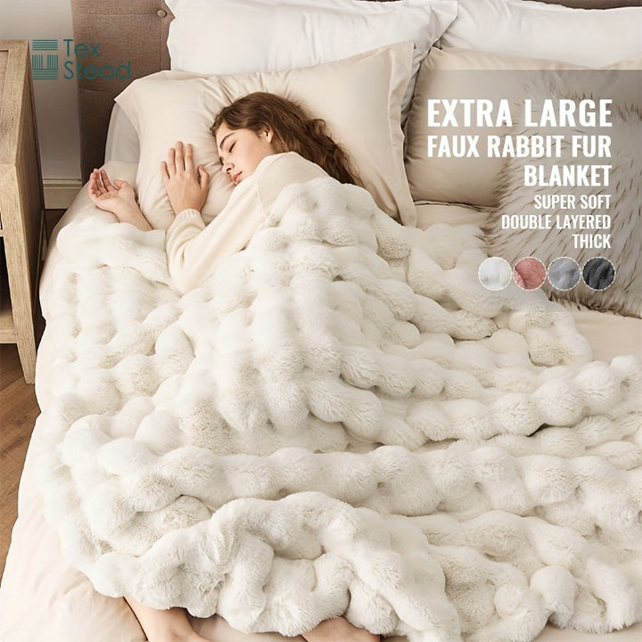 Plush Faux Rabbit Fur Blanket for Cozy Living Room Dcor