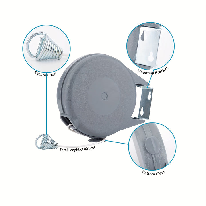 Retractable Design: This clothesline features a retractable design, allowing you to easily extend and retract the rope as needed. The 40 feet (12 meters) PVC retracting clothes rope provides ample length to hang wet or dry clothing both indoors and outdoors.
