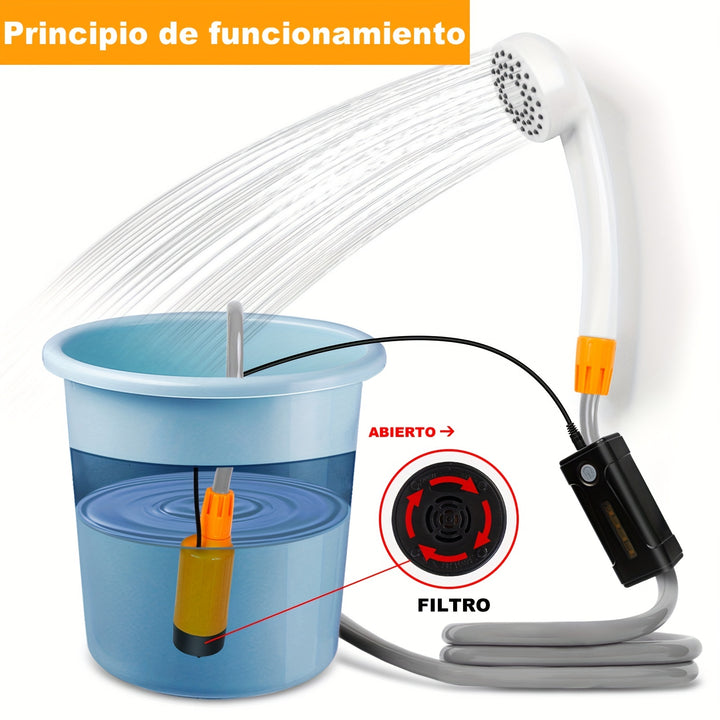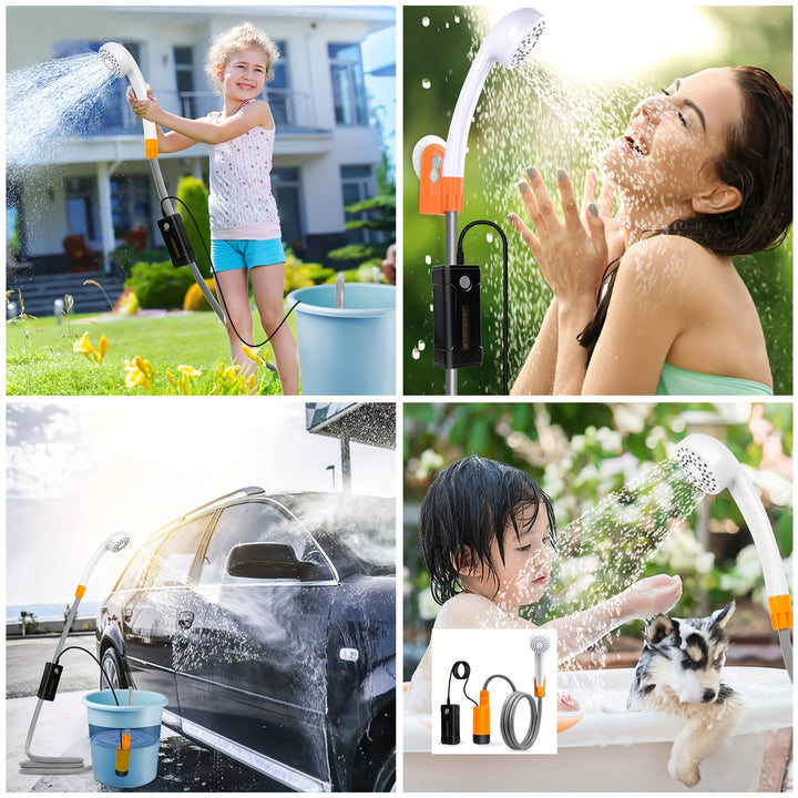 - Portable Camping Shower Pump With Detachable USB Rechargeable Batteries