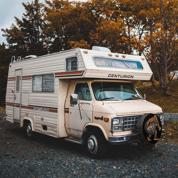 Funny Sasquatch Design: This spare tire cover features a humorous Sasquatch design, adding a fun touch to your vehicle.