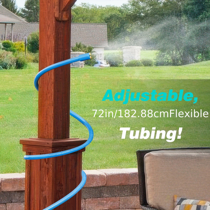 Simple Setup: Easy to assemble and disassemble, the misting system can be set up or packed away in minutes, making it convenient for people of all ages to use.