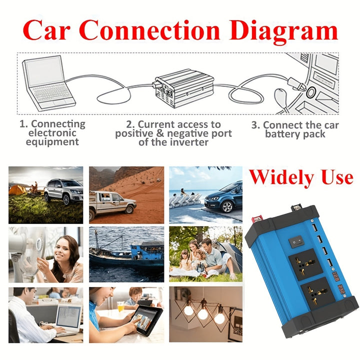 - Includes a car charger, allowing you to easily recharge the inverter during your journeys.