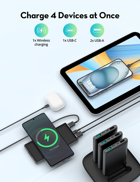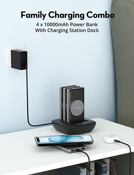 Ravpower Family Charging Combo 10000mAh 4 In 1 Wireless Power Bank Station - Black