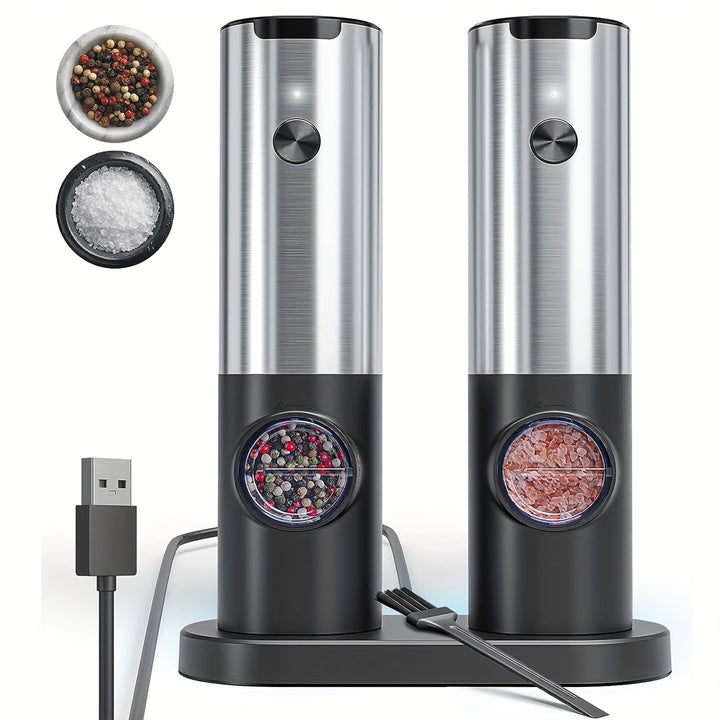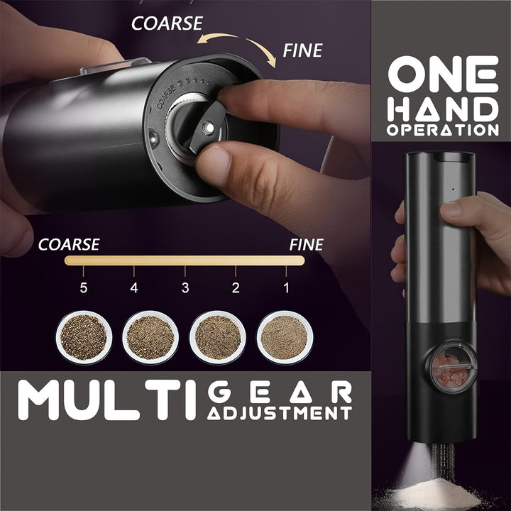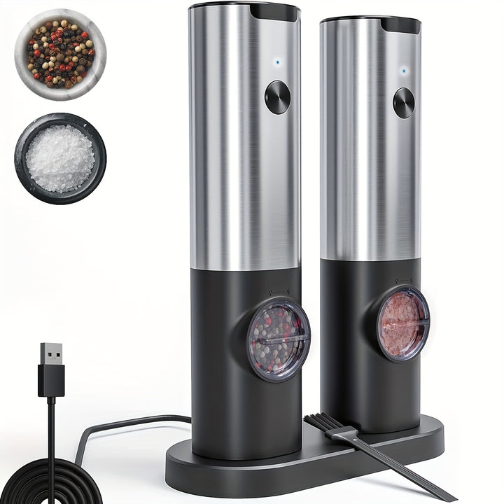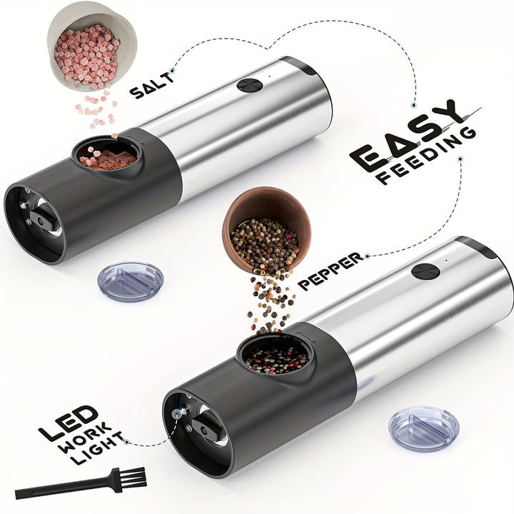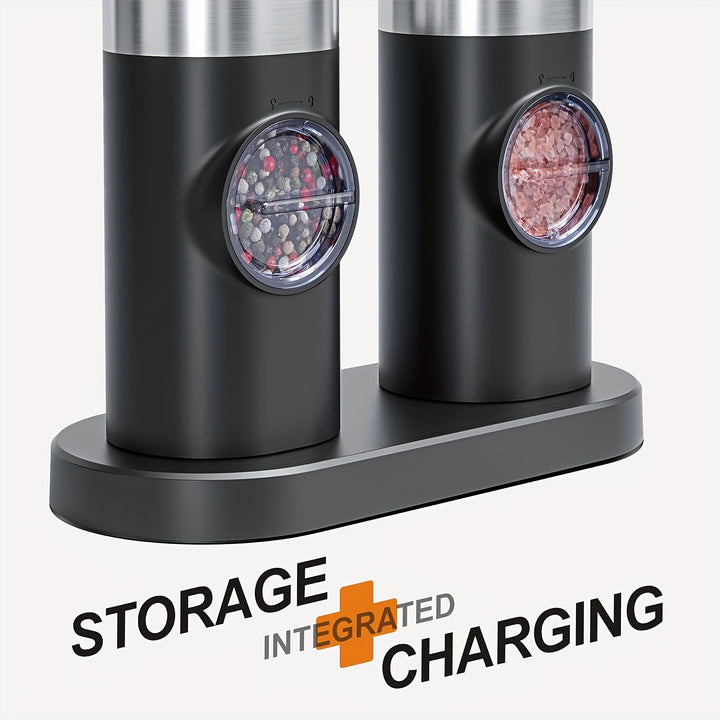 Electric Salt and Pepper Grinder Set: Enjoy the convenience of an electric grinder set that ensures easy and quick grinding of salt and pepper with the push of a button.