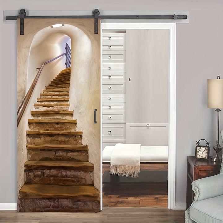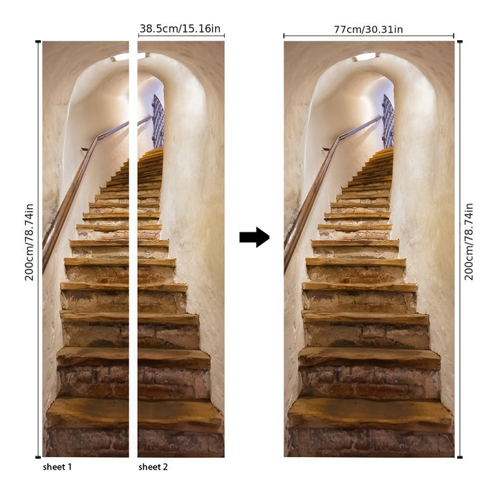 Retro 3D Staircase Door Stickers Self-adhesive Door Decor 76.96*199.9 Cm